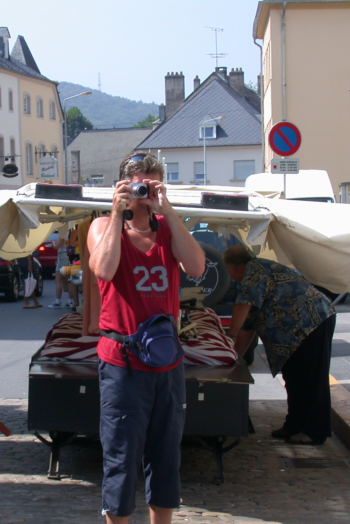 Übertreffen wir 2018 den Supersommer 2003? Hier ein 23er Schuss – Gegenschuss in Echternach, Luxemburg bei mindestens 37 Grad am 13. August 2003. Zum Glück ist aber übermorgen, spätestens überübermorgen die Hitze vorbei. Und es soll auch regnen!
