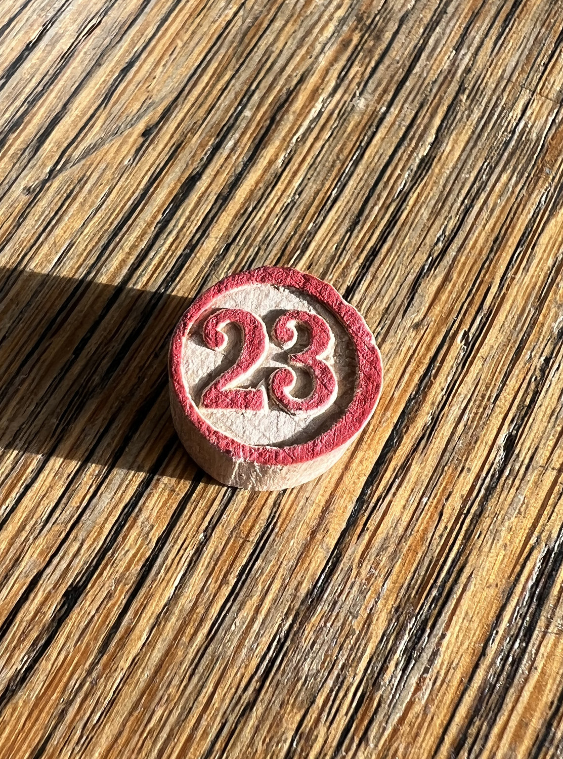 Zwischen den Jahren wurde ihr Unmut immer größer. Das Jahr 2023 ist mein Jahr, hatte sie groß herausposaunt. Ich sammle die Zahl 23 seit Jahrzehnten. Der Jahreswechsel von 22 auf 23 sollte also angemessen gefeiert werden. Es ist meine Zahl, ich habe sie besetzt mit meinem Traum und meiner Sammlung. Je näher das Datum des ersten Tags des Jahres 2023 kam, um so trotziger wurde sie. Ich mache gar nichts, überhaupt nichts, es wird auch nicht gefeiert. Ich kann es nicht ertragen, dass jeder, aber auch jeder Tag des nächsten Jahres die Zahl 23 trägt. Sie beschloss, sich auf die Tage der Monate zu konzentrieren die zweimal die 23 tragen: 23. Januar 23, 23. Februar 23, 23. März 23 und so fort. An diesen Tagen würde sie jeweils eine kleine 23er-Arbeit machen, oder ihnen eine schon vorhandene widmen. Eine Ausstellung sollte vorbereitet werden. Mehrere kleine Objekte mit goldenen 23-Zahlen wollte sie fertigstellen und gesammelte Texte mit eben dieser Zahl zu Wandbildern vergrößern. Am 23. Mai 23 würde sie im ortsansässigen, altehrwürdigen Künstlerverein ein paar dieser Arbeiten zeigen. Zu ihrer Überraschung bekam sie kurz vor Jahresende von einer Freundin einen kleinen Spielstein aus Holz zugeschickt, der die 23 in roter Farbe trug. Er war kostbar in einem kleinen schwarzen Schmuckkästchen verpackt. Der Anblick des Spielsteins beruhigte sie ein wenig: Ich nehme ihn als Zeichen, dass im nächsten Jahr die Dinge sich auch dann ereignen, wenn ich nichts tue.