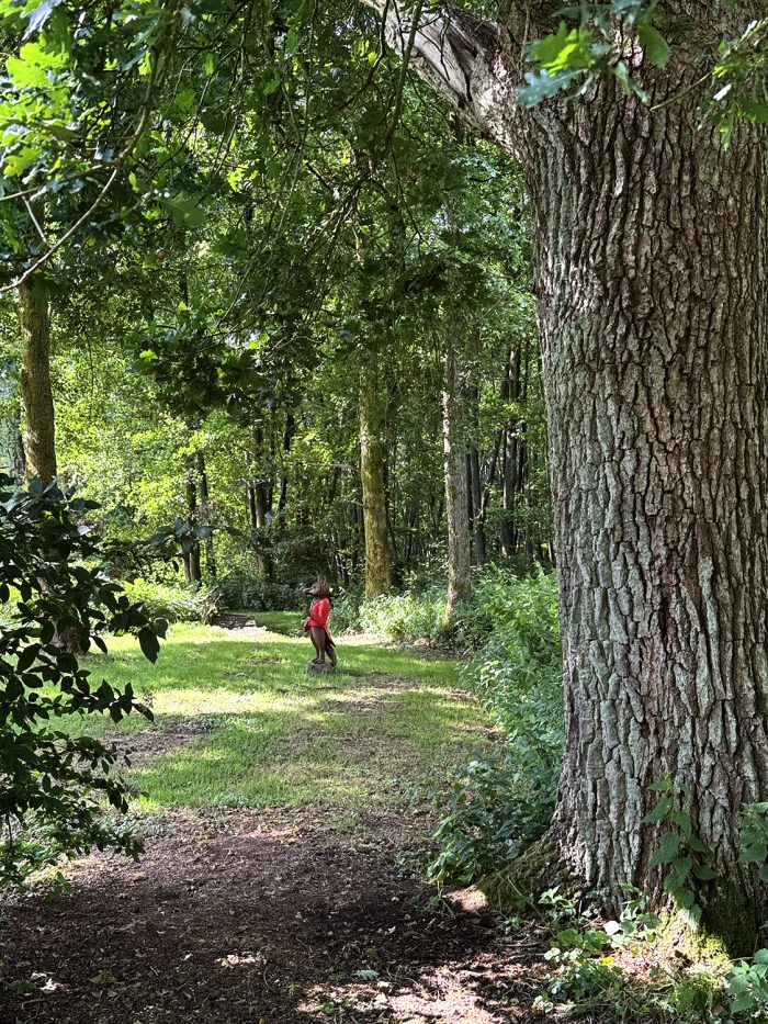 Geschnitzter Fuchs im Wald bei Sudermühlen, Fotografie RW, Juli 2025