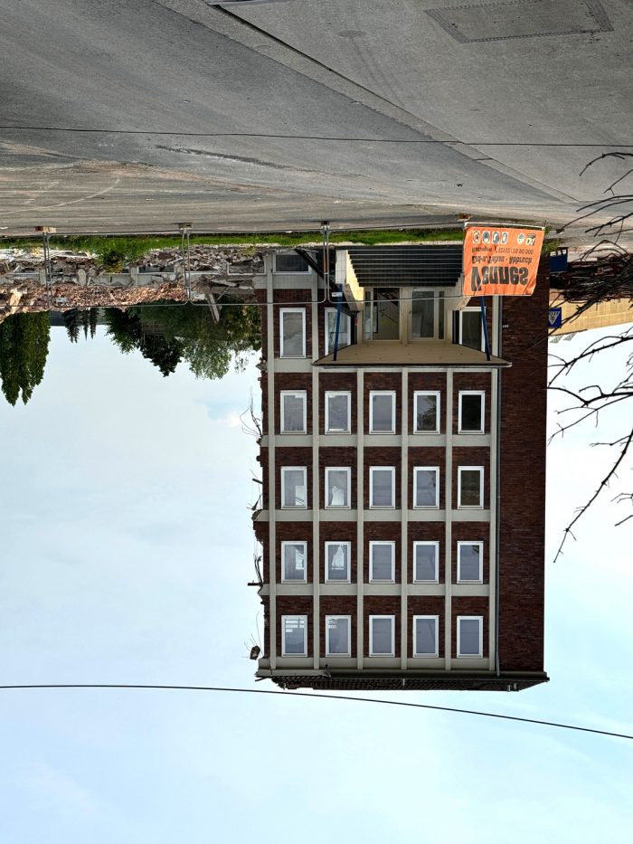 Abriss eines Bürogebäudes, Hoeherweg Düsseldorf, bearbeitete Fotografie RW, 10. Mai 2024, Worterinnerungen aus der Nacht zum 11. Mai 2024
